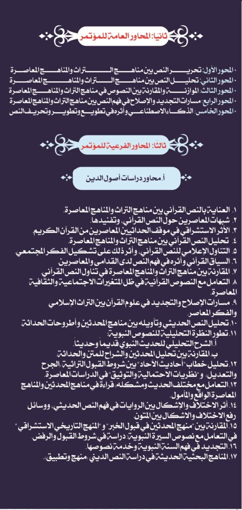 الإيميل الخاص باستقبال الملخصات والبحوث الخاصة بأصول الدين: