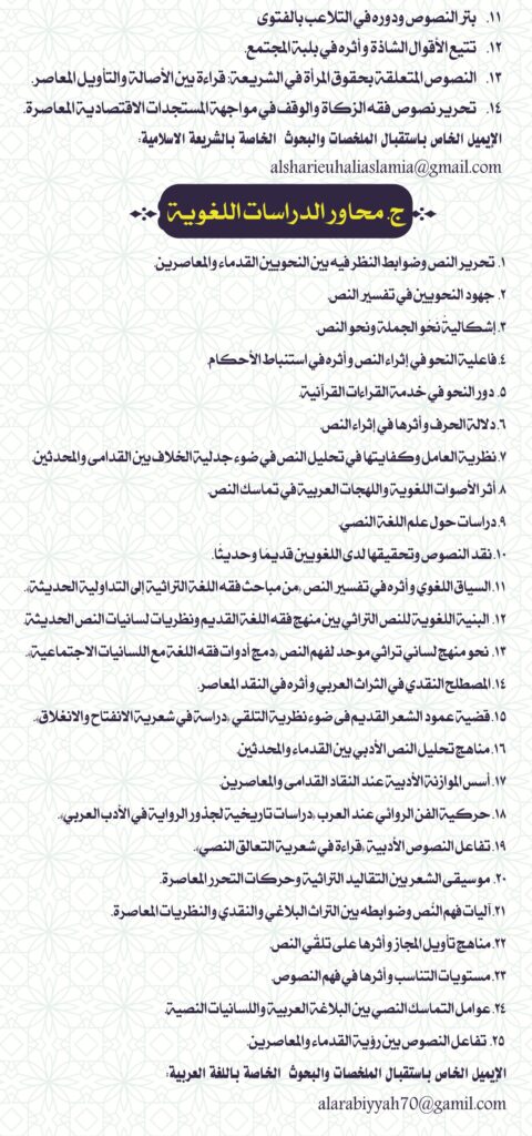الإيميل الخاص باستقبال الملخصات والبحوث الخاصة باللغة العربية:
