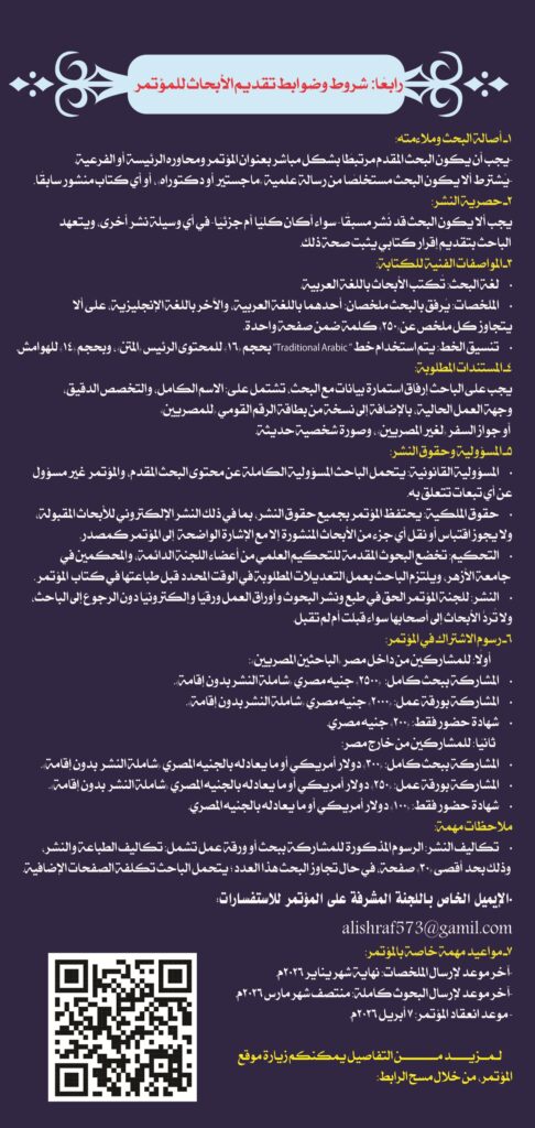 الإيميل الخاص باللجنة المشرفة على المؤتمر للاستفسارات: